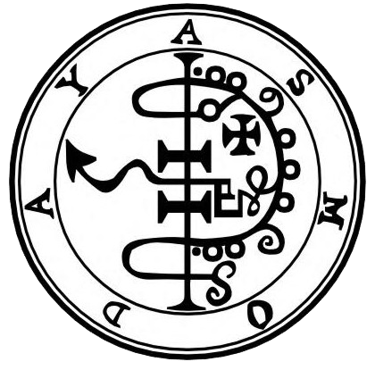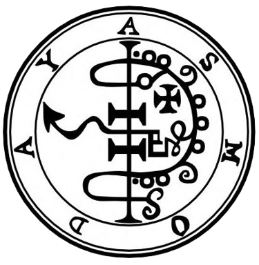 O trigésimo segundo espírito é Asmoday , ou Asmodai. É um grande, forte e poderoso rei. Aparece com três cabeças, eventualmente a primeira é a de um Búfalo, a segunda como um homem, e a terceira de um bode; ele possui também a cauda de uma serpente, e de sua boca jorram flamas de fogo. Seus pés são como de um ganso. Ele senta-se sobre um dragão infernal, e trás uma bandeira em sua mão. É o preferido de AMAYMON, e acima dele não existe nenhum outro. Quando for convocá-lo deve-se proceder com muito cuidado, pois AMAYMON tentará iludi-lo. Asmoday concede o anel das Virtudes e ensina as artes aritméticas, astronomia, geometria e todos os ofícios manuais. Responde corretamente o que lhe seja requisitado. Torna também o magista invisível e revela os lugares onde existem tesouros ocultos os quais ele guarda. Como AMAYMON ele governa 72 legiões de espíritos inferiores.