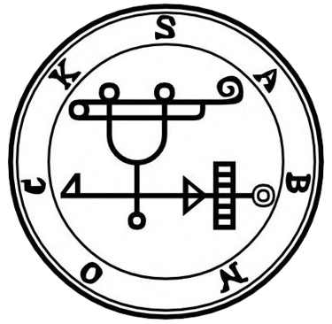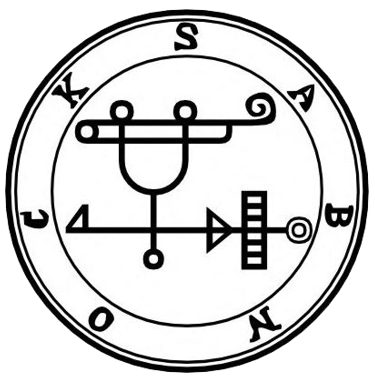 SABNOCK. - O quadragésimo terceiro espírito, conforme o Rei Salomão os comandou para o Vaso de Latão, é chamado Sabnock, ou Savnok. Ele é um Marquês, Poderoso, Grande e Forte, aparecendo na forma de um soldado armado com cabeça de leão, montado em um cavalo de cor pálida. Sua função é construir altas torres, castelos e cidades, e equipá-los com armaduras, etc. Ele também pode afligir homens por muitos dias com feridas e chagas podres e cheias de vermes. Ele concede bons familiares a pedido do Exorcista. Ele comanda 50 legiões de espíritos; e este é seu selo.