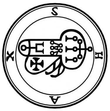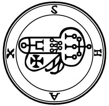 SHAX, ou SHAZ (ou SHASS). - O quadragésimo quarto espírito é Shax, ou Shaz (ou Shass). Ele é um Grande Marquês e aparece na forma de um pombo-torcaz, falando com uma voz rouca, mas sutil. Sua função é tirar a visão, audição ou compreensão de qualquer homem ou mulher ao comando do Exorcista; e roubar dinheiro das casas dos reis, devolvendo-o depois de 1.200 anos. Se comandado, ele trará cavalos a pedido do Exorcista, ou qualquer outra coisa. Mas ele deve primeiro ser comandado para um Triângulo, Ò, caso contrário, ele enganará o Exorcista e lhe contará muitas mentiras. Ele pode descobrir todas as coisas que estão ocultas e não são guardadas por espíritos malignos. Ele às vezes concede bons familiares. Ele governa 30 legiões de espíritos, e este é seu selo, etc.