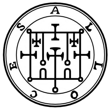 ALLOCES. - O quinquagésimo segundo espírito é Alloces, ou Alocas. Ele é um Duque, Grande, Poderoso e Forte, aparecendo na forma de um soldado montado em um grande cavalo. Seu rosto é como o de um leão, muito vermelho, com olhos flamejantes. Sua fala é rouca e muito forte. Sua função é ensinar a arte da astronomia e todas as ciências liberais. Ele traz bons familiares até você; também governa 36 legiões de espíritos. Este é seu selo, etc.