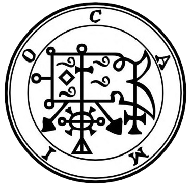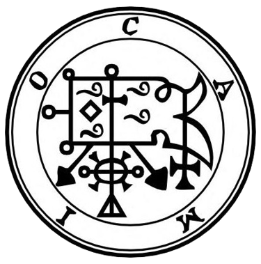 CAMIO ou CAIM. - O quinquagésimo terceiro espírito é Camio, ou Caim. Ele é um Grande Presidente e aparece inicialmente na forma de um pássaro chamado tordo, mas depois assume a forma de um homem carregando em sua mão uma espada afiada. Ele parece responder em cinzas ardentes ou em brasas de fogo. Ele é um bom debatedor. Sua função é dar aos homens a compreensão de todos os pássaros, mugidos de bois, latidos de cães e outras criaturas; e também da voz das águas. Ele dá respostas verdadeiras sobre coisas futuras. Ele foi da Ordem dos Anjos, mas agora governa 30 legiões de espíritos infernais. Este é seu selo, que tu deves usar, etc.