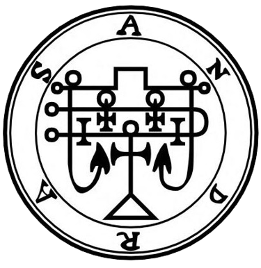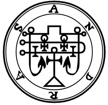 ANDRAS. - O sexagésimo terceiro espírito é Andras. Ele é um Grande Marquês, aparecendo na forma de um anjo com a cabeça semelhante a um corvo negro da noite, montado em um forte lobo negro, e empunhando uma espada afiada e brilhante erguida em sua mão. Sua função é semear discórdias. Se o Exorcista não tomar cuidado, ele matará tanto ele quanto seus companheiros. Ele governa 30 legiões de espíritos, e este é seu selo, etc.